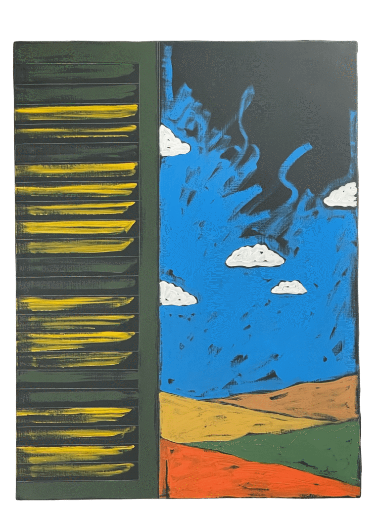Tano Festa, Finestra con paesaggio, 1988 olio su tela.
